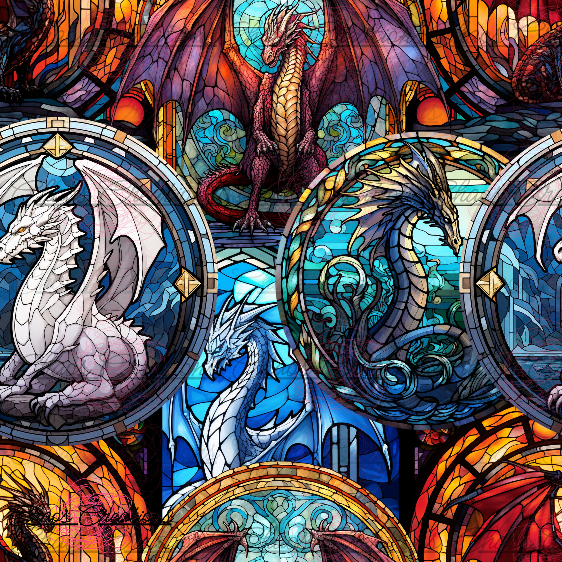 Dragons stained glass